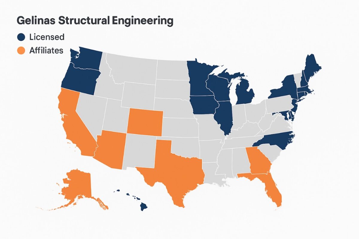 Gelinas Structural Engineering is licensed to practice professional engineering in multiple states, ensuring we can sign and seal your project documents where needed. Our current PE licensure covers: